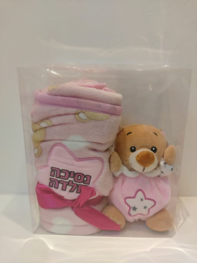 מארז ליולדת מארז שמיכה פליז דובי ורוד 75x90